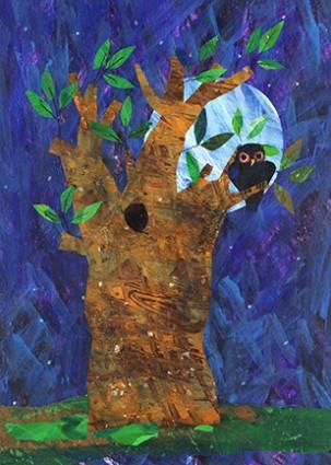 Eric Carle is famous for his representations of cheerful suns and soulful moons. While he traditionally leaves his daytime skies the blank white of the paper, he evocatively paints his nighttime scenes in deep blues and indigos. Carle’s visible brushwork is often sprinkled with twinkling stars, fireflies, and other creatures of the night. The moon—in all its phases—always displays a gentle face. “The calm moon is a source of comfort in the night,” says Carle. This exhibition features original artwork from Papa, Please Get the Moon for Me, Dream Snow, and The Very Quiet Cricket, among others. Several pieces from Draw Me a Star are also included to mark the 25th anniversary of the book’s publication.