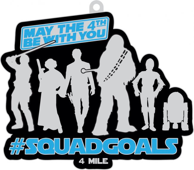We all know that May 4th is an amazing day! It’s May the Fourth Be With You Day and we are celebrating with our sixth annual May the 4th Be With You 4 Mile event. And this year’s medal features our favorite squad!