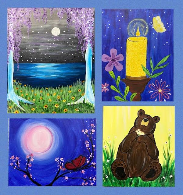 Special during Open Art Studio this month: Paint one of the featured CANVAS PAINTINGS for only $18! All other paintings $24. All ages. On Thursdays seniors paint any painting for $18. Open Art Studio is typically held every Thursday, Saturday, Sunday, plus days off from school, from 11am - 3 pm. See calendar page for dates/times. Leave your busy schedules and the stresses of the world at the door as you enter our peaceful studio atmosphere. No experience is necessary, and all ages are welcome!